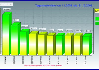 Ein Programm für den Anwender, welcher sich von GASTRO TOUCH nicht nur eine „Boniermaschine“ erwartet, sondern auch Kennziffern, welche grafisch optimal aufbereitet zur Verfügung gestellt werden.
